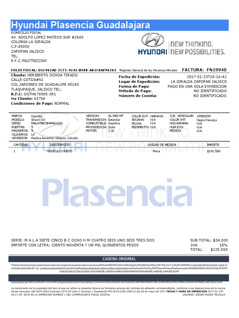 Factura Hyundai Plasencia Pdf Vehiculos Con Traccion Delantera Fabricantes De Vehiculos De Motor