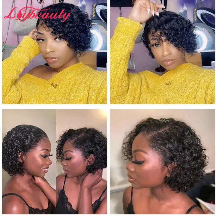 Brazilian Romance Curly Human Hair Wigs Short Pixie Cut Bob Style For African American Black Women
